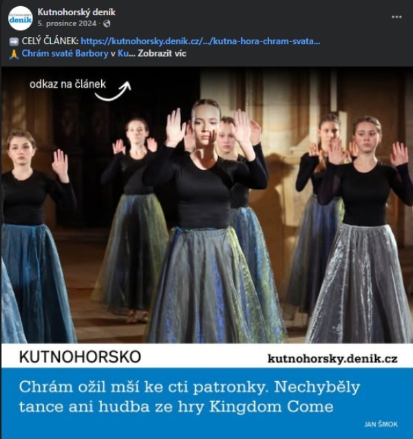 Nechte se vtáhnout do chvíle, kdy se tanec stává modlitbou, hudba mostem mezi tradicí a současností a chrám sv. Barbory živým svědectvím víry i umění.